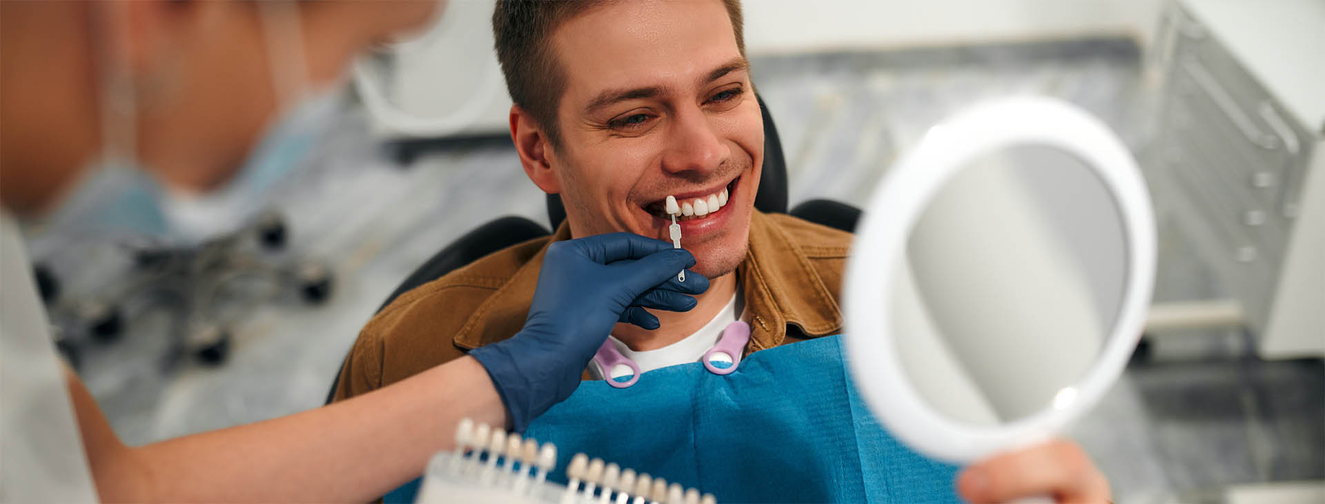 Obtaining porcelain veneers typically requires two visits to finish the procedure, with little to no anesthesia needed for the treatment. The teeth are prepared by softly buffing and shaping the area to be ready for the application of the veneer. A mold of the teeth is taken on the first visit and a shade will next be selected by you and your dentist.